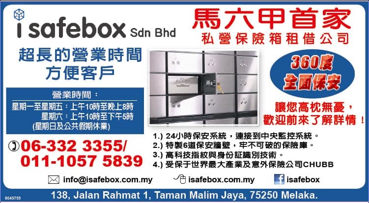 I SAFEBOX SDN BHD (1203748-V) 138, Jalan Rahmat 1, Taman Malim Jaya, 75250 Melaka, Malaysia.